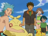 By defeating his mother, he restores the Gym's reputation, and proceeds to leave all his Pokémon (except Forretress) to his younger brother Forrest, before departing for the Hoenn region, where he catches up with Ash and his two new friends, May and Max.