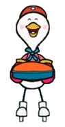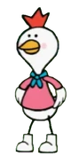 Cocori is a white anthropomorphic chicken, who works at a cafe, and drives an egg car through Poppets Town.