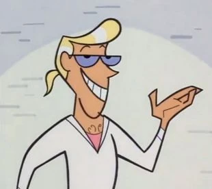 - He visually resembles Dexter's dad from Dexter's Laboratory. They both have blonde hair and wear glasses. They are also both voiced by Jeff Bennett.