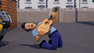 In "Alarm on the Beach", Elvis has been struggling with oversleeping, so Sam gets him an alarm clock.