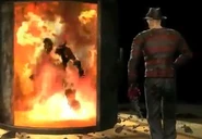 - Welcome To My Nightmare: Freddy summons a large furnace. He then stabs the opponent in the neck and stomach, and chucks them straight into the furnace. As the opponent burns in agony, Freddy waves goodbye and shuts the door, while the opponent's arm is hanging out of the furnace, cutting the arm off, and burning the opponent to death.