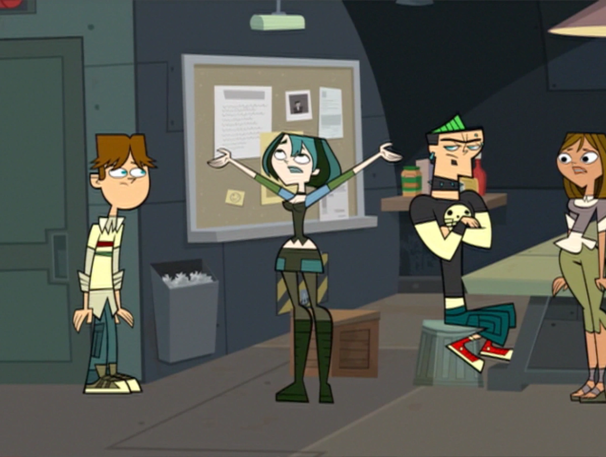 - Gwen's eliminations in Total Drama Action and Total Drama World Tour were partially because of her two love interests: Trent and Duncan, respectively.