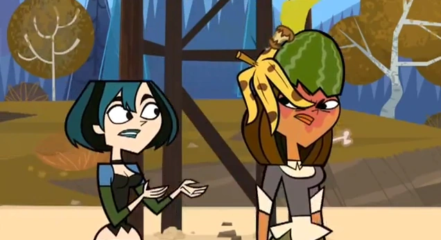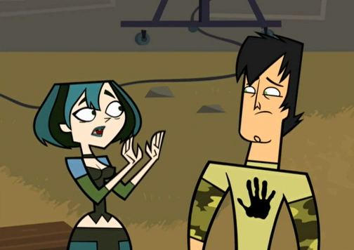 t tries to strike up a conversation with her and she discovers him carrying nine branches. Later, Trent throws a dance-off challenge against Leshawna, believing that Gwen would be saddened if her team lost. Gwen feels responsible for causing his mental distress. The two have a private chat in the forest where they iron out their problems. As they are about to kiss, Owen reveals himself in wanting to see them make out. They respond by throwing branches at him.