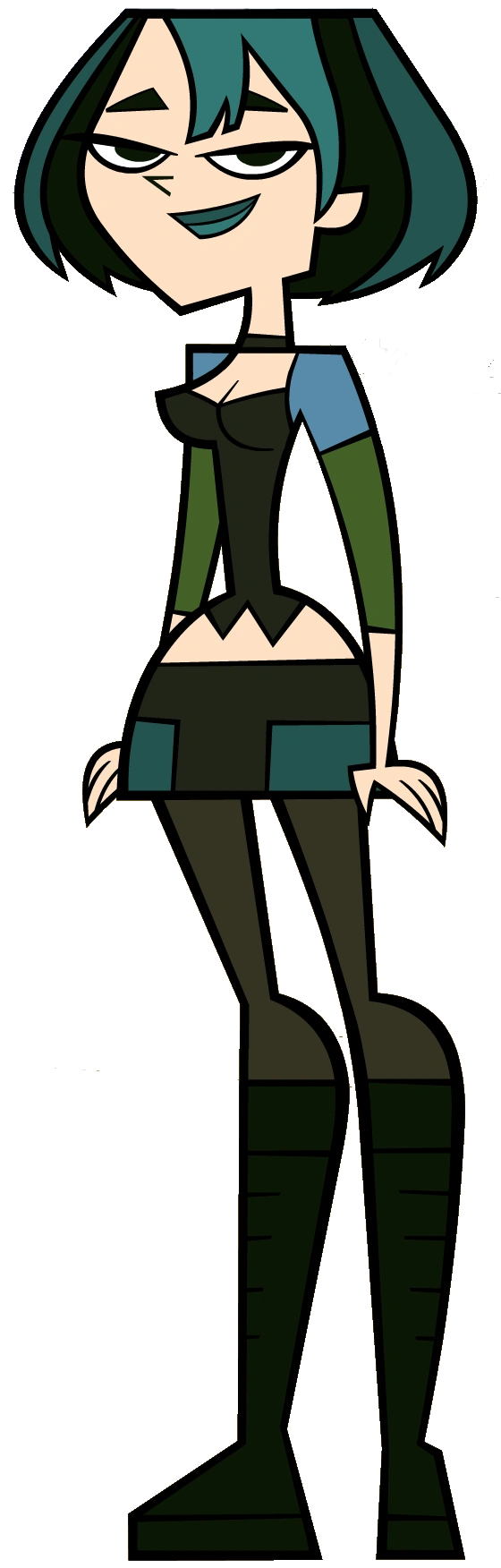 Gwen is a goth girl whose interests lie in art and astronomy. She is dark, independent, and level-headed, stating her best quality is her inability to get excited over minuscule things. Her attitude at first seems cold and harsh, but she is not a bitter person, rather cautious of whom she lets into her life. Beneath her tough exterior is a kind heart that learns to trust as the series progresses, Gwen's guard lowering with each season. Despite her distaste for whatever "the sheep" are fond of, she actually does desire to be welcomed by the popular crowd. As revealed in Trial by Tri-Armed Triathlon, she distances herself from it because she believes it is not where she belongs. She isn't afraid to stand her ground should her reputation take a hit. Gwen also suffers from claustrophobia, as seen in Phobia Factor, The Treasure Island of Dr. McLean, and Zeke And Ye Shall Find. She believes strongly in karma, and is also a huge fan of horror movies, the clichés of which will sometimes dictate how she performs in challenges.