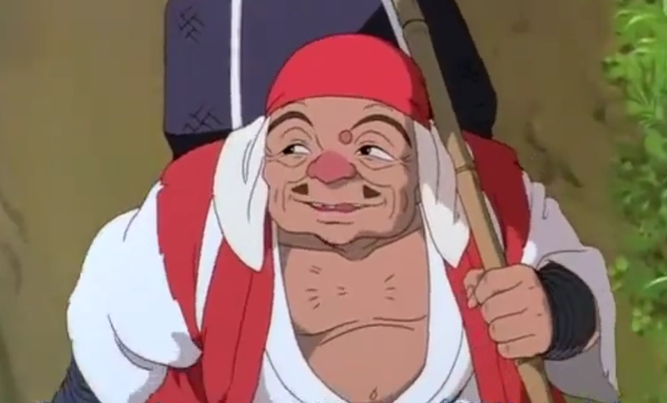 Jiko-Bo (Jigo in the English dub) is the hidden main antagonist of Studio Ghibli's 1997 film Princess Mononoke. He at first appears to be a kind and peaceful monk Ashitaka meets after saving him and other villagers from a massacre during his journey to find a way to lift his curse but in actuality he turns out to be the one behind the plot to kill the Forest God as he plans to sell its head to the Emperor to become rich. He even got Lady Eboshi (the character who seemed like the main antagonist at first) to aid him in his scheme, telling her to do so to repay the Emperor for using his riflemen in the past.
