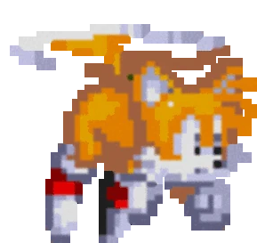 Tails is a young, mobian fox with a unique genetic mutation giving him two tails instead of one. He has mostly amber-orangish and white fur. He also possesses large triangular ears with white canals on top of his head, a small black nose, white fur on the front of his torso and fluffy white fur top of his chest, a white-furred muzzle with cheek tuffs, and three locks of hair on his forehead.