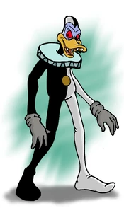 Paddywhack is a supernatural entity who inhabits a haunted jack-in-the-box. Although he is capable of possessing inanimate objects and imbuing them with his will, he can and will sometimes appear in his true form, which is a very tall, thin duck with long legs and sharp teeth, wearing a black and white leotard with a ruffled collar. Paddywhack feeds off of negative emotions and always exhorts others to "Please play with me!" enticing them to join him in his various acts of mayhem.
