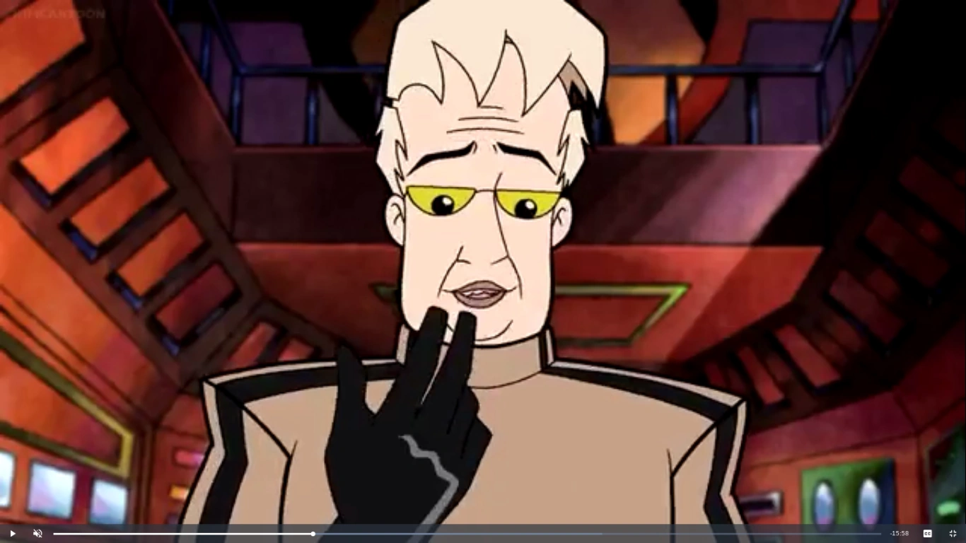 Dr. Phineus Phibes is a scientist, obsessed with becoming immortal. Phibes is a Caucasian male, with an outrageous blond comb over, and sharp teeth. He wears a tan uniform, with black boots. He also wears glasses, and a swiss army hook for a left hand. As time progressed he became more and more high strung from the combination of his henchmen's idiocy and the repeated interference of the dog and hippie boy. In his youth, Phibes conducted a highly dangerous experiment with electricity in order to achieve his dream, which cost him his left hand (he wears a prosthetic that seems to function as a high-tech Swiss Army knife) and made him a living lightning rod -- hence, he seldom ventures outdoors, because his condition will quickly cause storm clouds to gather regardless of the weather.