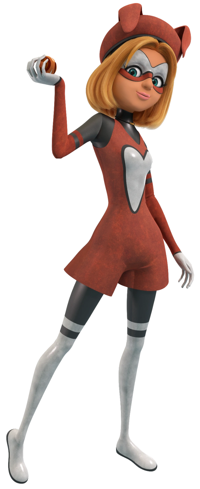 As the holder of a Miraculous, Sabrina is assisted by a small light brown creature resembling a dog called Barkk, who is a magical being known as a Kwami.