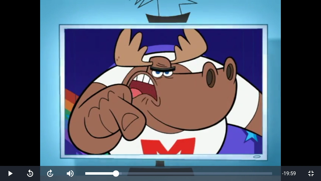 The Sharing Moose is Quacky's main helper and muscle in the TV show called Quacky the Duck. He wants children to share (hence his name) and often gives information on how to stay out of jail. The Sharing Moose's voice actor appears to be doing community service since he seems to be from jail.
